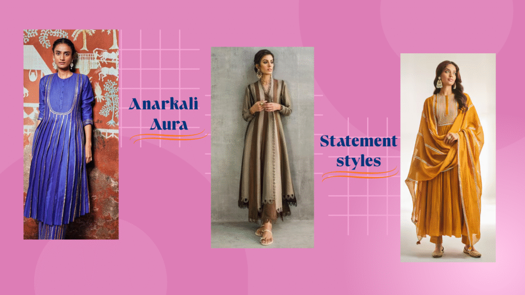 - Floor-length Anarkali gowns, jacket-style Anarkali suits, layered Anarkalis, and Indo-Western fusions cater to diverse tastes.