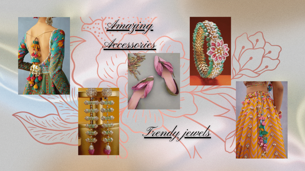 The must-have accessories for ethnic wear outfits are statement jewelry, traditional footwear, and classic handbags. Essential Jewelry Pieces: Footwear Choices:
